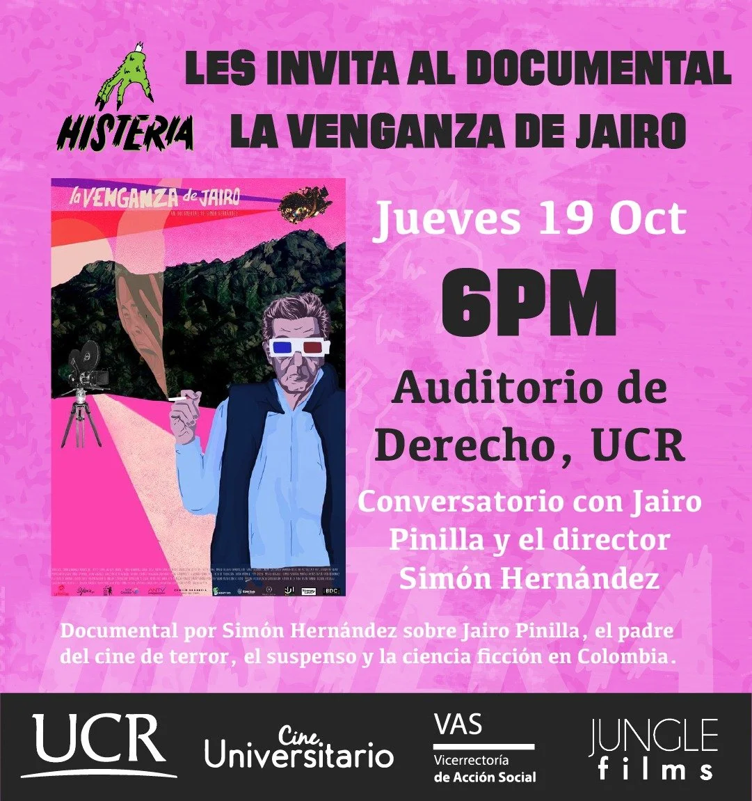 La Vengaza de Jairo + Convesatorio jueves, 19 de octubre de 2023 6:00 p. m. sábado, 21 de octubre de 2023 9:00 p. m. Auditorio de Derecho San Pedro, San José Costa Rica (mapa) Google Calendar ICS
