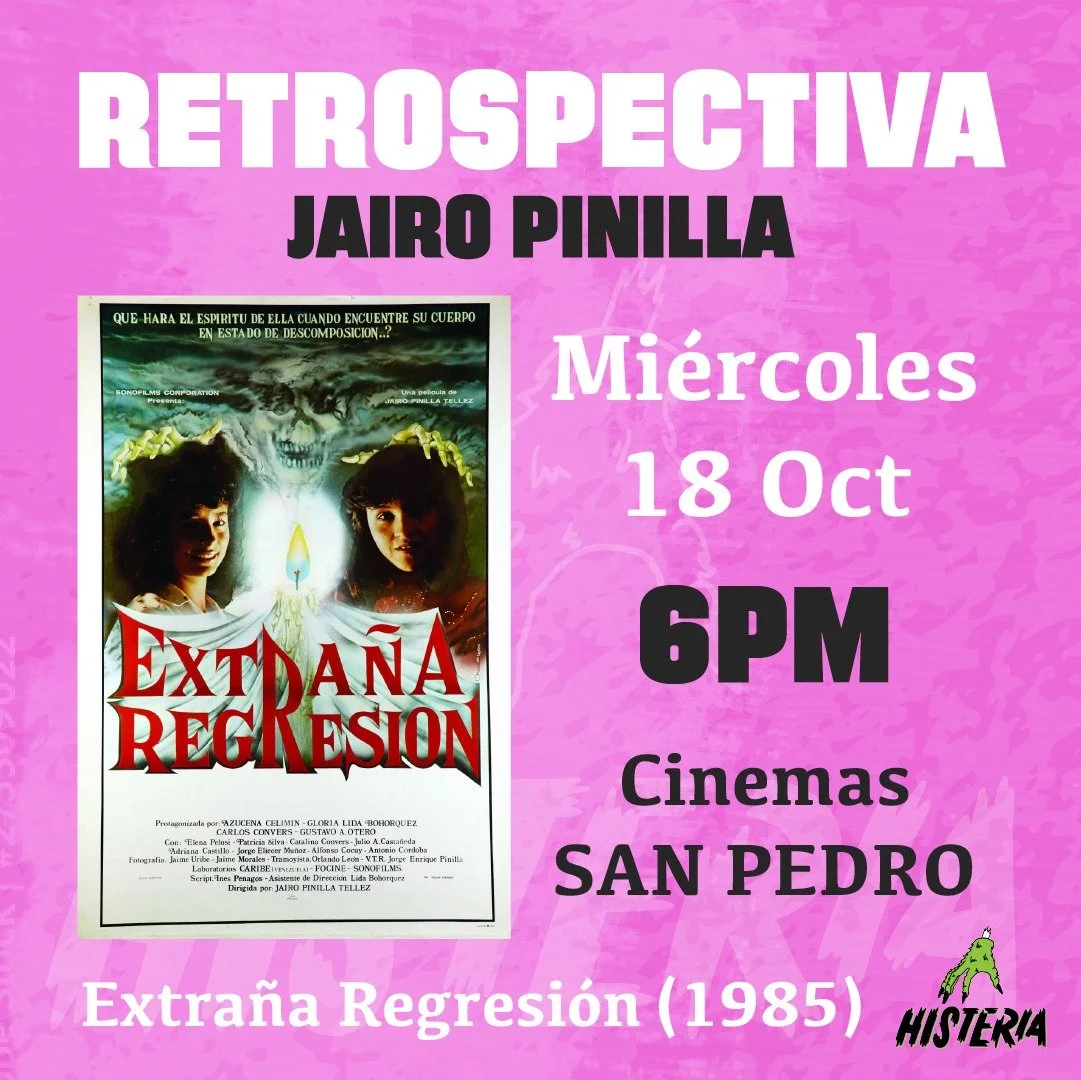 Retrospectiva: Extraña Regresión (1985) por Jairo Pinilla. miércoles, 18 de octubre de 2023 6:00 p. m. 8:00 p. m. Cinemas San Pedro San Pedro, San José Costa Rica (mapa) Google Calendar ICS